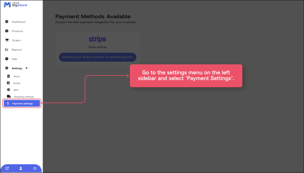 1. In the left menu, go back to the “Settings” option and choose “Payment Settings.”