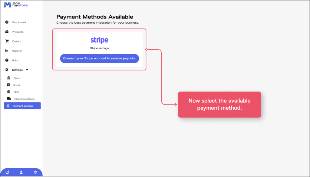 2. You will need to select the available payment method (Here, we will use Stripe).