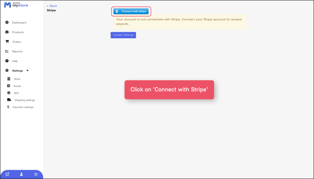 3. You will see a notification that your account is not yet connected. Click on ‘Connect with Stripe.’