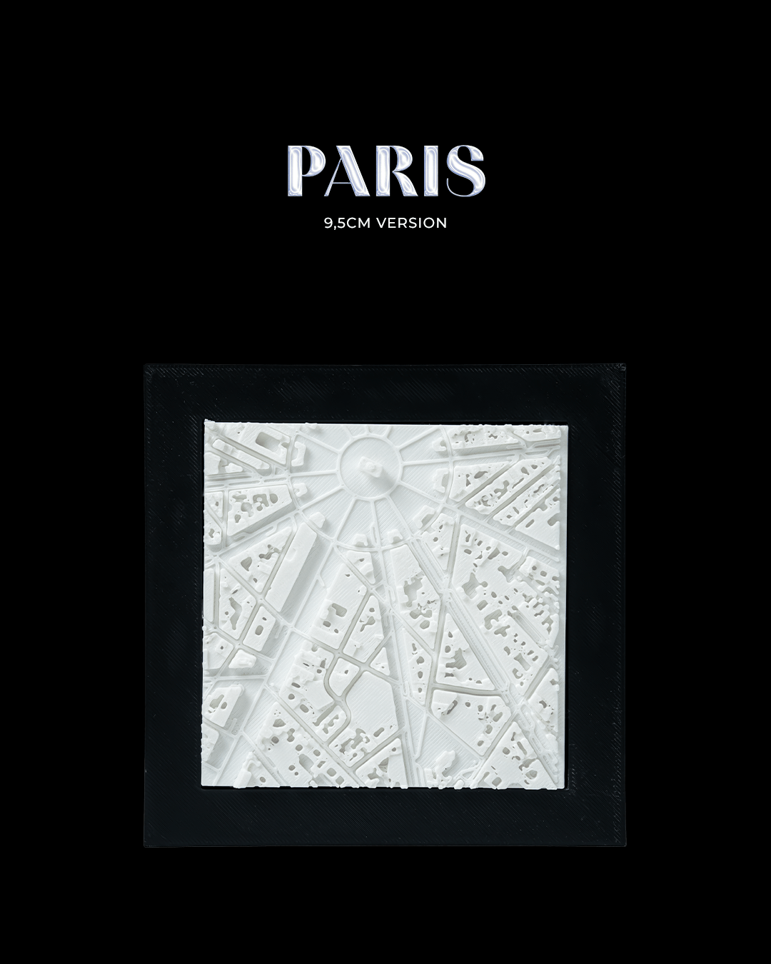 Experience the beauty of Paris with this intricately detailed 3D-printed map! Perfect for lovers of the City of Lights, this piece showcases the iconic streets and landmarks of Paris, bringing a touch of elegance and sophistication to your space.