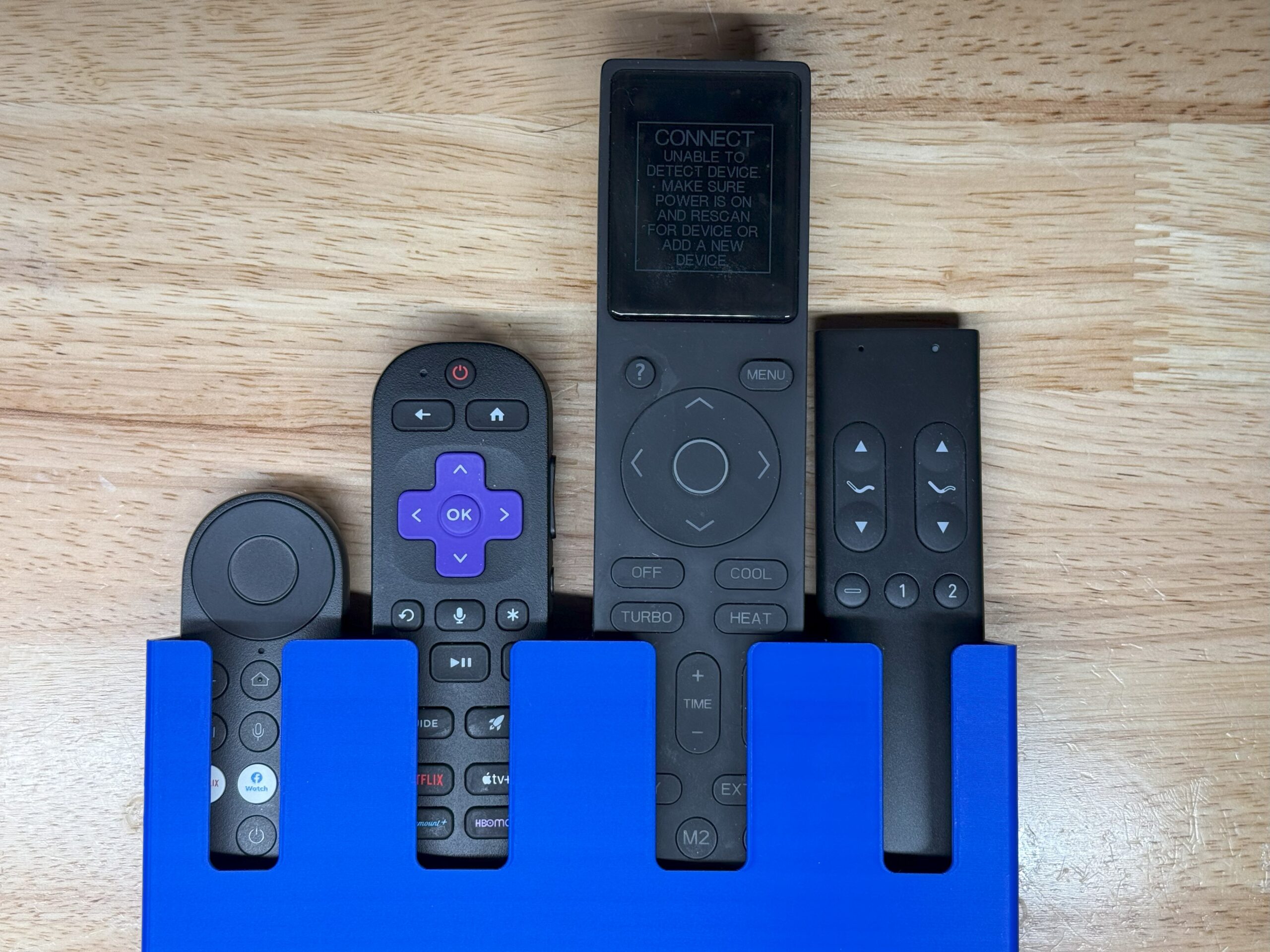 A wall mountable remote caddy that can hold up to 4 remotes. See specs and features below. Mounting hardware not included.