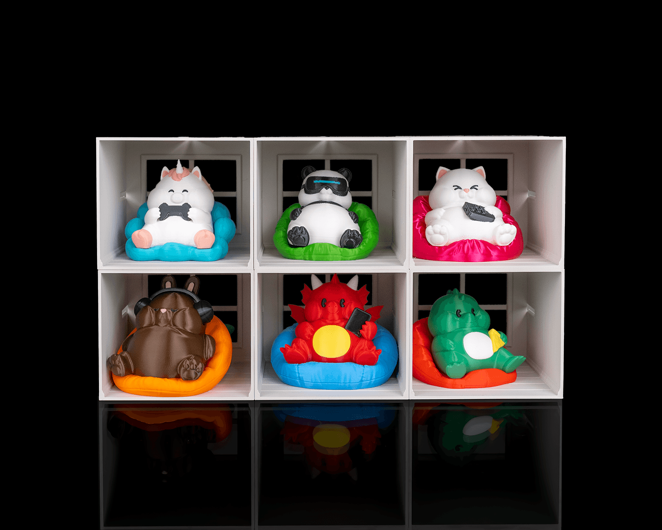 Um lugar confortável para colocar seu grupo de puf, cada um profissionalmente treinado para não fazer absolutamente nada.