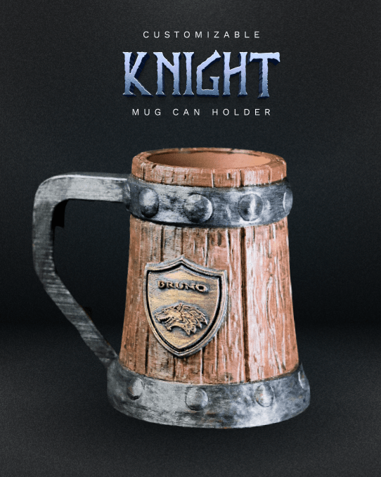 Raise a toast like a true knight with this meticulously crafted 3D printed tankard, designed to echo the rugged, timeless style of medieval drinkware. This tankard features a detailed wood grain texture on the body, making it look like it’s been carved from ancient oak, while the rim and base boast a sleek metal finish to give it an authentic, sturdy feel.