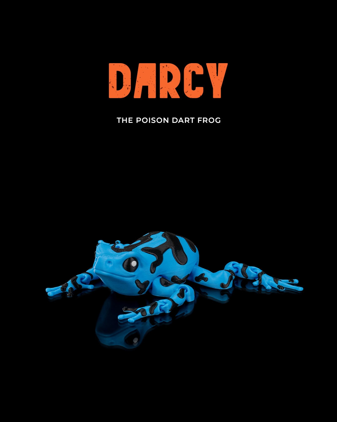 Meet Darcy, the Poison Dart Frog – a vibrant and 3D printed articulated amphibian full of life and color! With its flexible, lifelike design and vivid detailing, Darcy captures the stunning beauty and unique nature of this rainforest dweller.