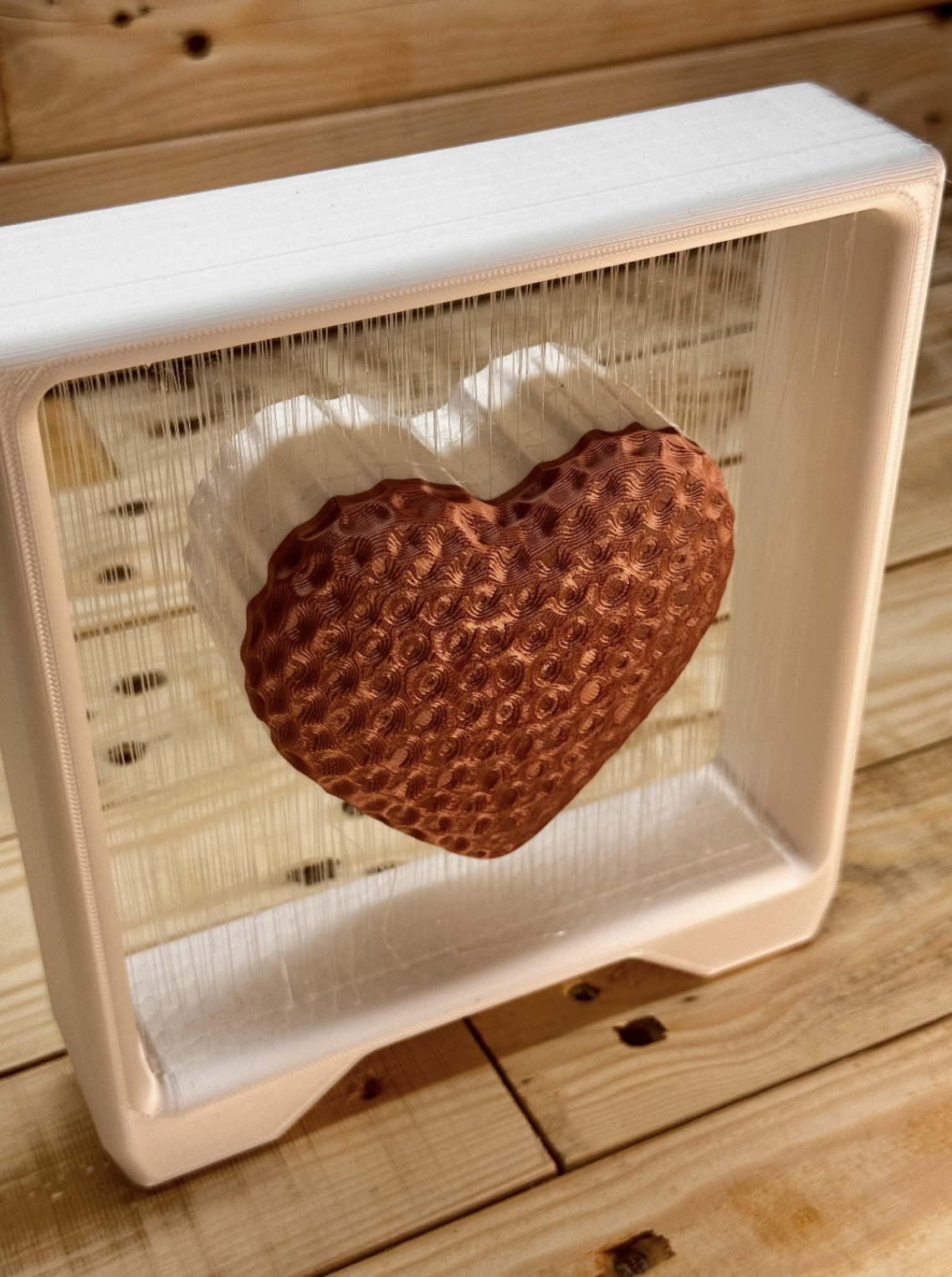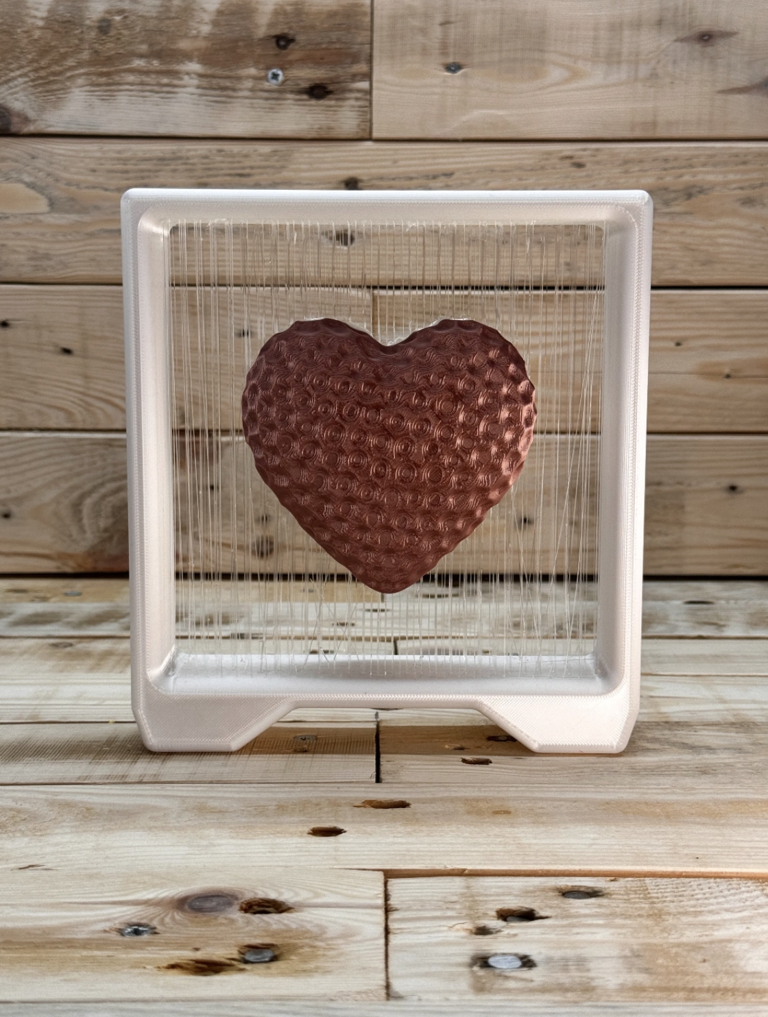 Standing boxed dented heart string art decor