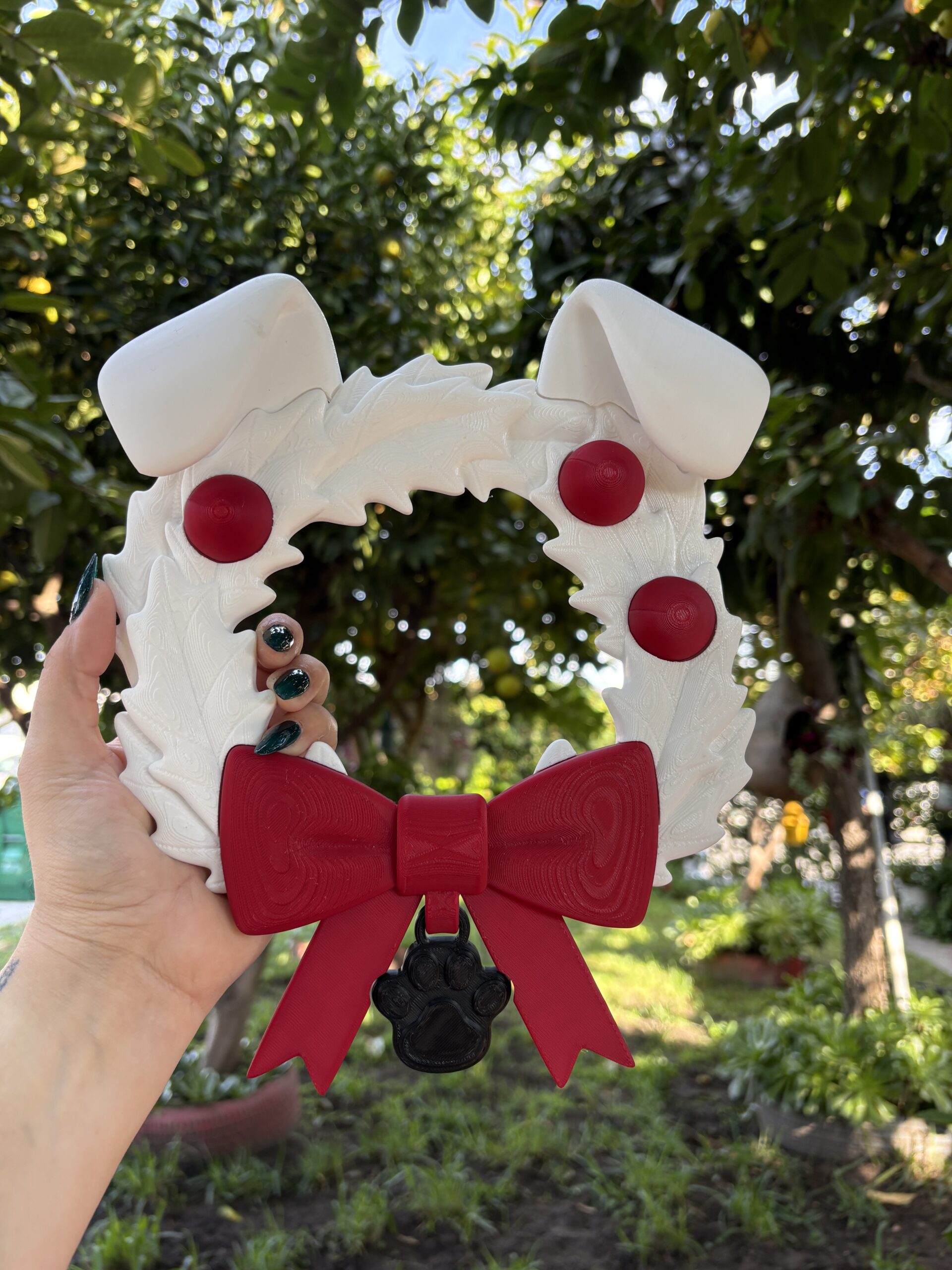 Doggy Christmas reef that is custom to colored desired. Can be hung on a wall by a nail