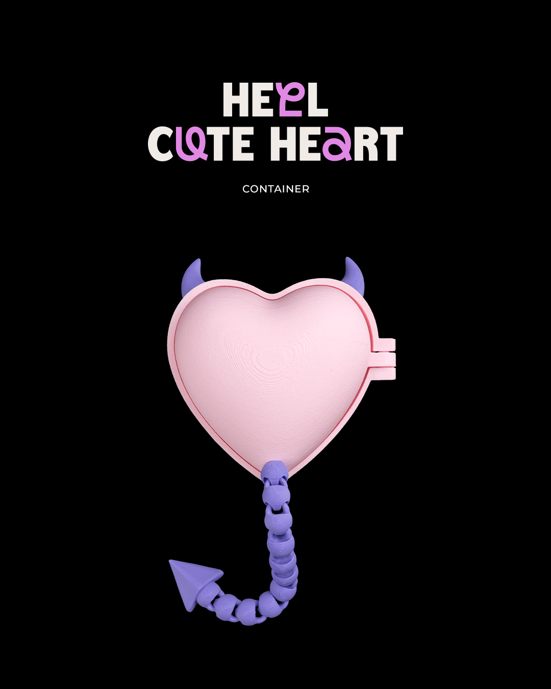 This whimsical heart-shaped container features a soft pink heart paired with a mischievous little devil tail and tiny horns for a fun twist on sweet and spooky. The contrast between the gentle heart shape and the playful tail gives it a lighthearted, cheeky personality. Perfect for holding small surprises or keepsakes, it’s a charming blend of love with just a hint of mischief.