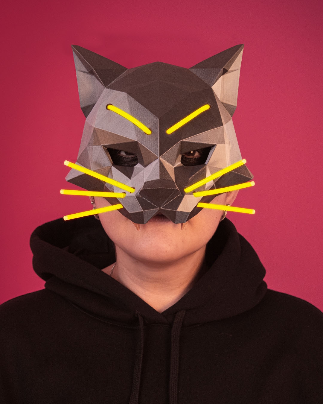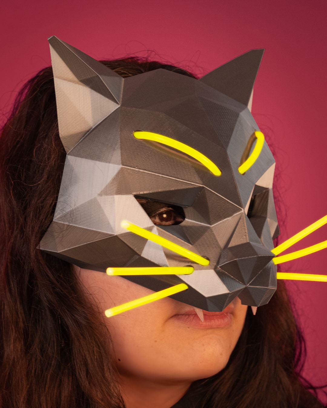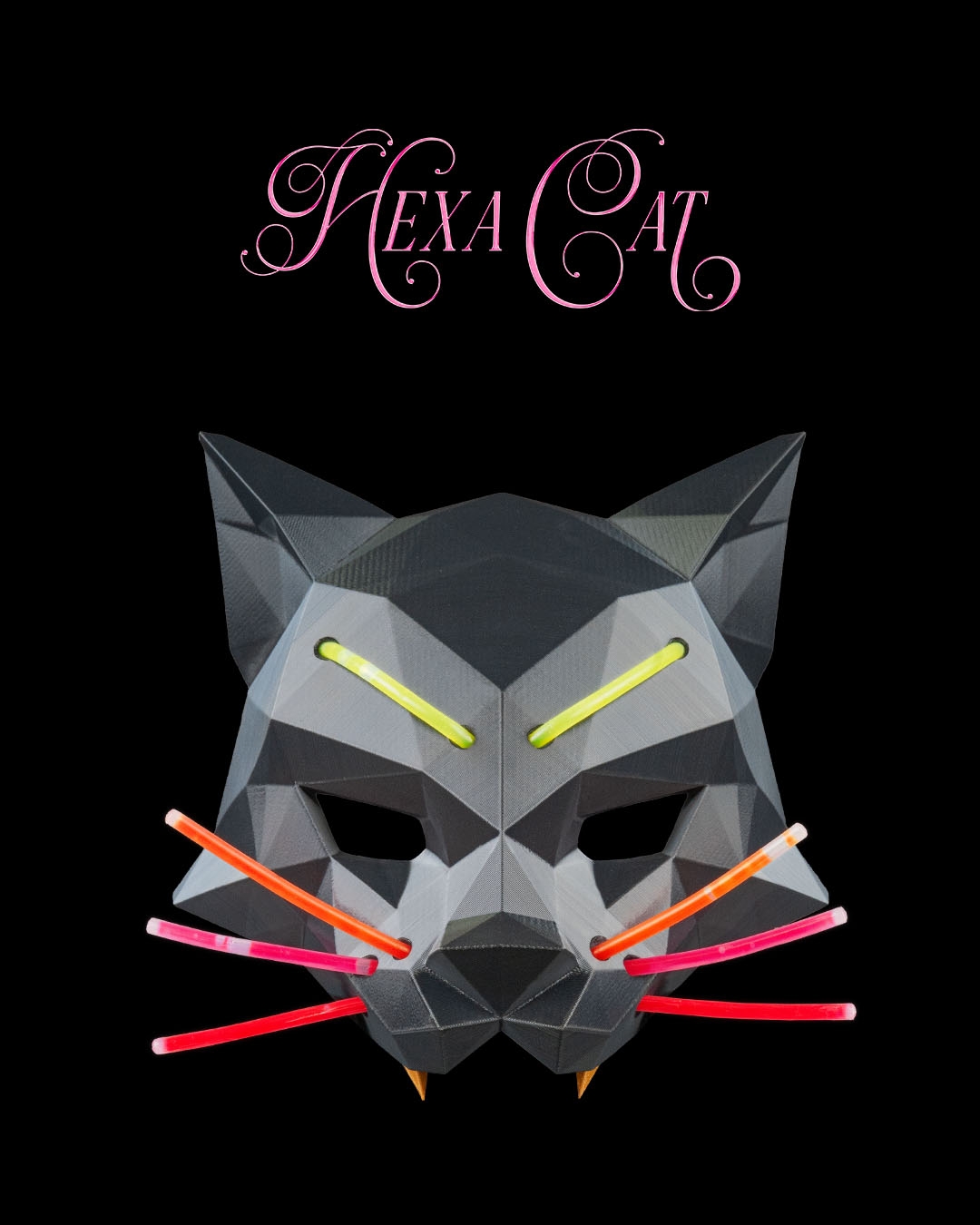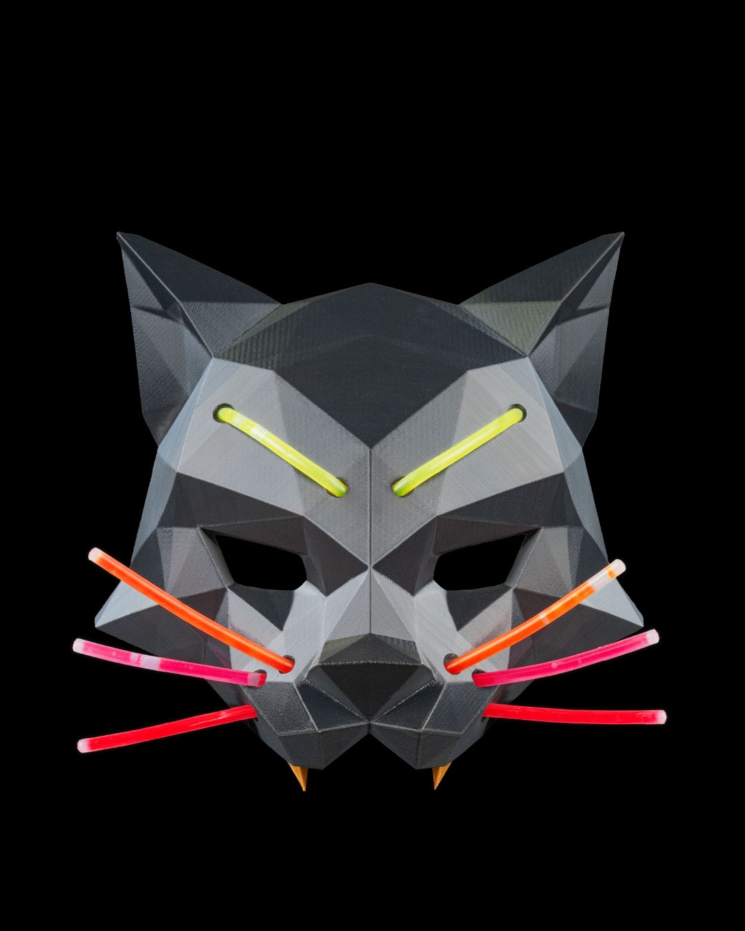 A low-poly feline with glowing lines that stalks the night in sharp, geometric style.