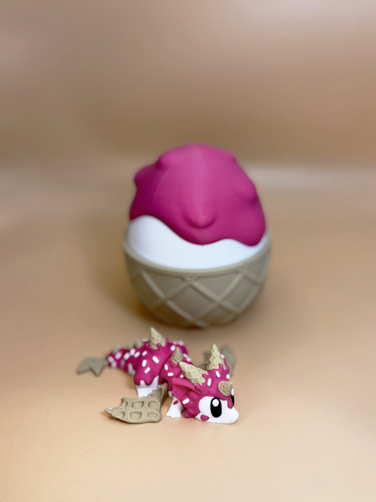 Small Flexible Ice-Cream Dragon With Egg – Articulated 3D‑Printed Toy