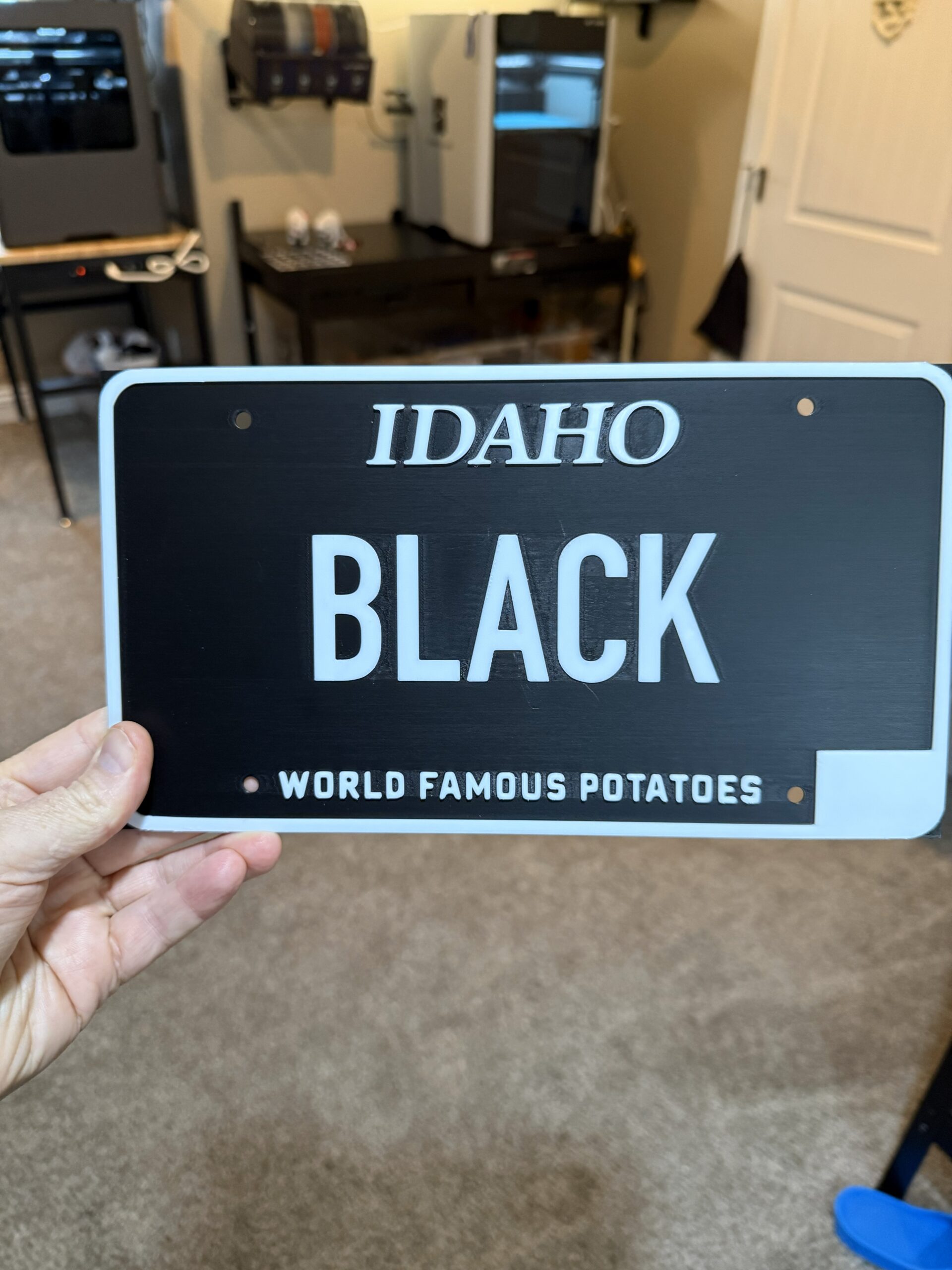 Custom Idaho License Plate. Used for decoration. This is a 3D Printed sign.