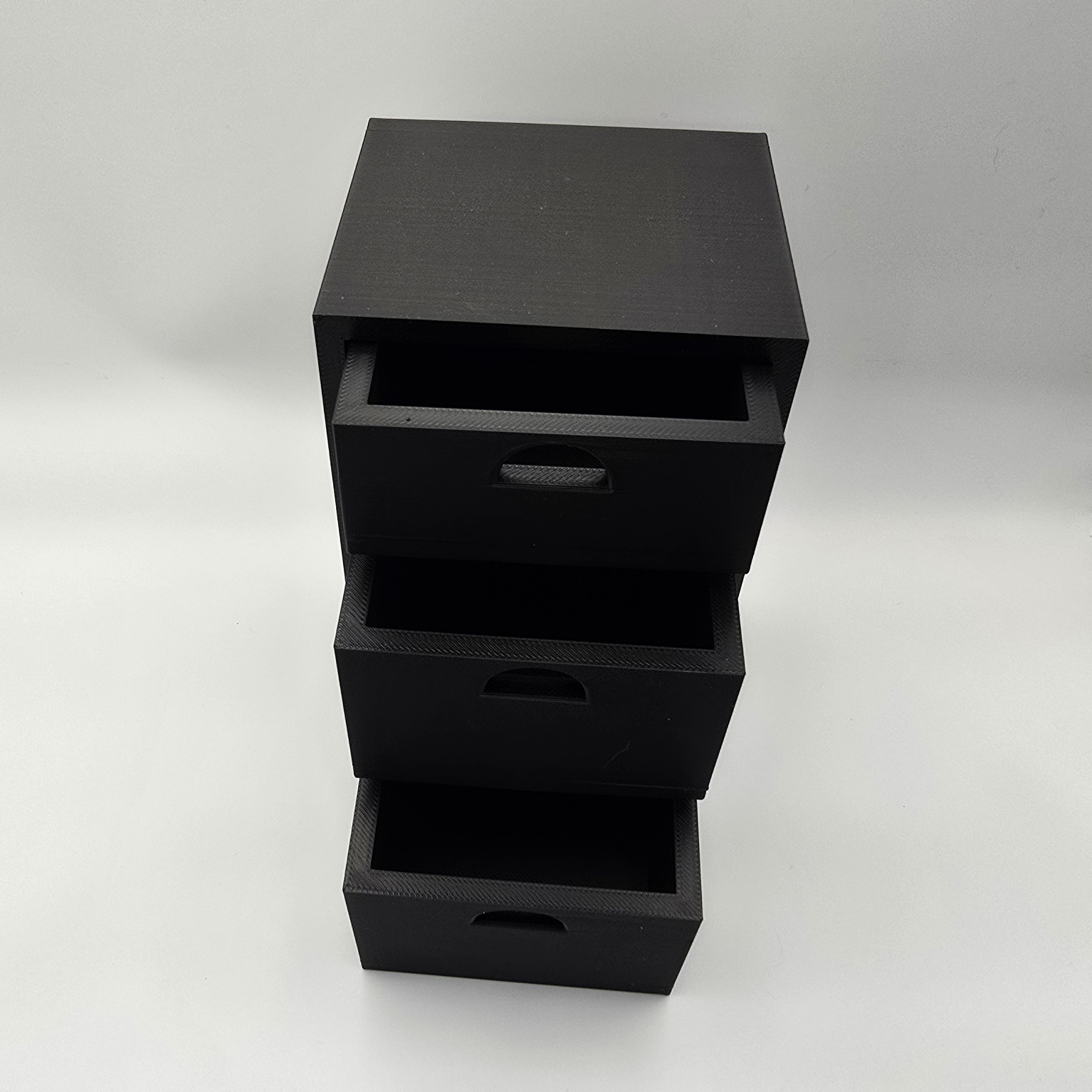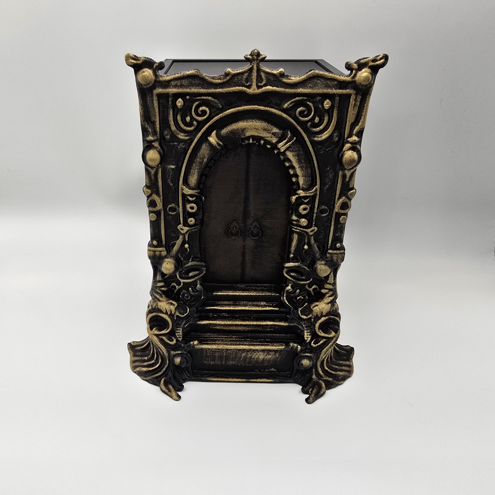 Jewelry Tinker Box by Oxi Studios, dry brushed to bring out the details. Drawers slide into the frame and out of sight. Measurements: 15cm (5.9″) high by 12cm (4.7″).