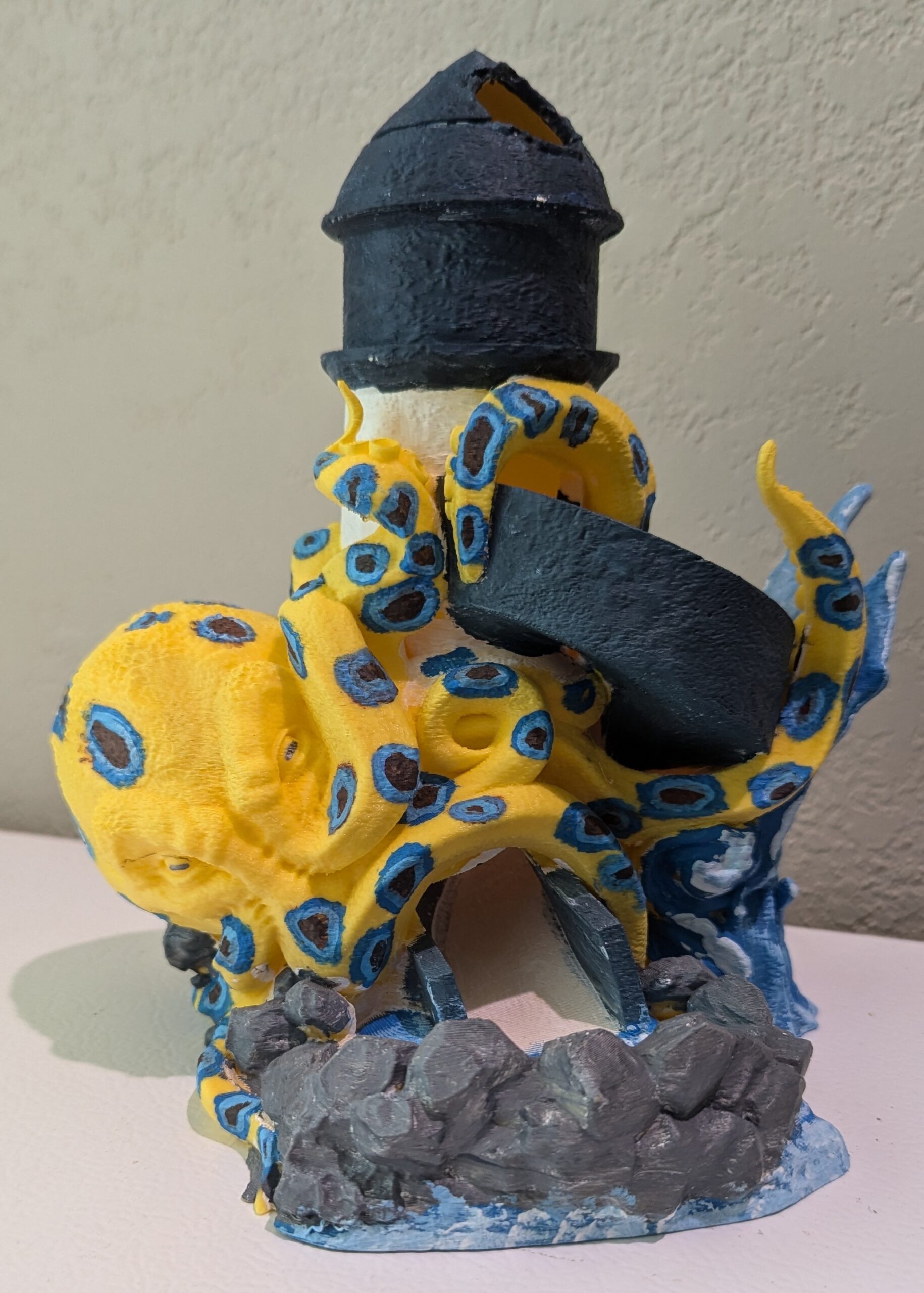Crush your enemies with this nautically themed dice tower. Inspired by the blue ringed octopus, this tower will pressurize your rolls in ways you cannot fathom. *rolls will probably still be random