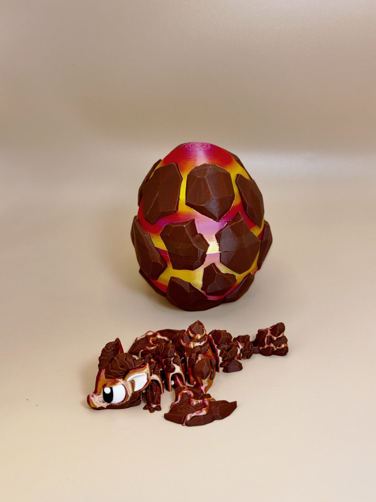 Small Flexible Lava Dragon With Egg – Articulated 3D‑Printed Toy
