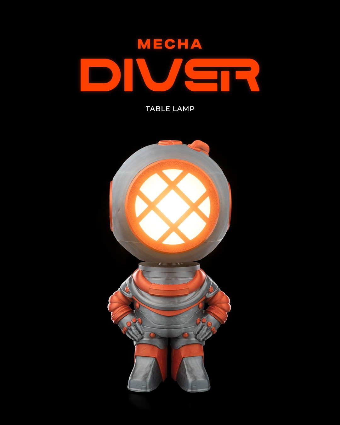 Se você é fascinado por tecnologia, design futurista e o misterioso mundo subaquático , a Luminária Mecha Diver foi criada especialmente para você. Inspirada na fusão entre o fascínio dos mergulhadores e a estética moderna dos mechas , esta peça única é uma verdadeira obra de arte que vai transformar seu ambiente. Feita em impressão 3D, ela traz detalhes metálicos em tons de cinza e laranja, linhas retas e formas geométricas que remetem ao universo da engenharia avançada e das profundezas oceânicas. É o equilíbrio perfeito entre modernidade, mistério e personalidade .