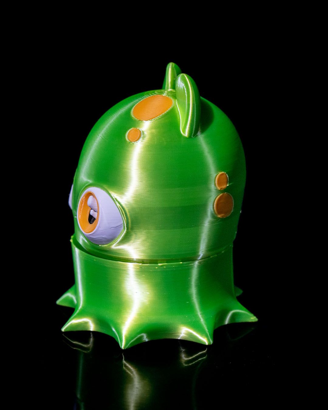 Colour: Body – green. Spots – orange. Eyes – white/black/orange