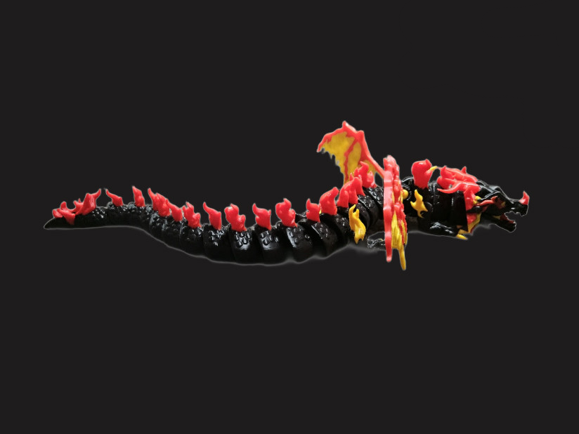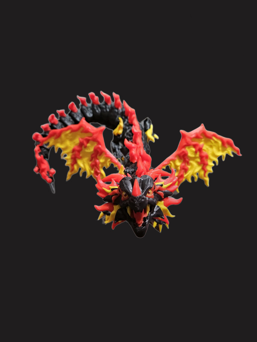 Unleash the heat with this stunning 3D Printed Fire Dragon, a bold and blazing creature brought to life in a powerful mix of black, red, and yellow. With an articulated body and flexible joints, this dragon slithers, curls, and poses like it’s alive—ready to soar across your desk or guard your treasure hoard.