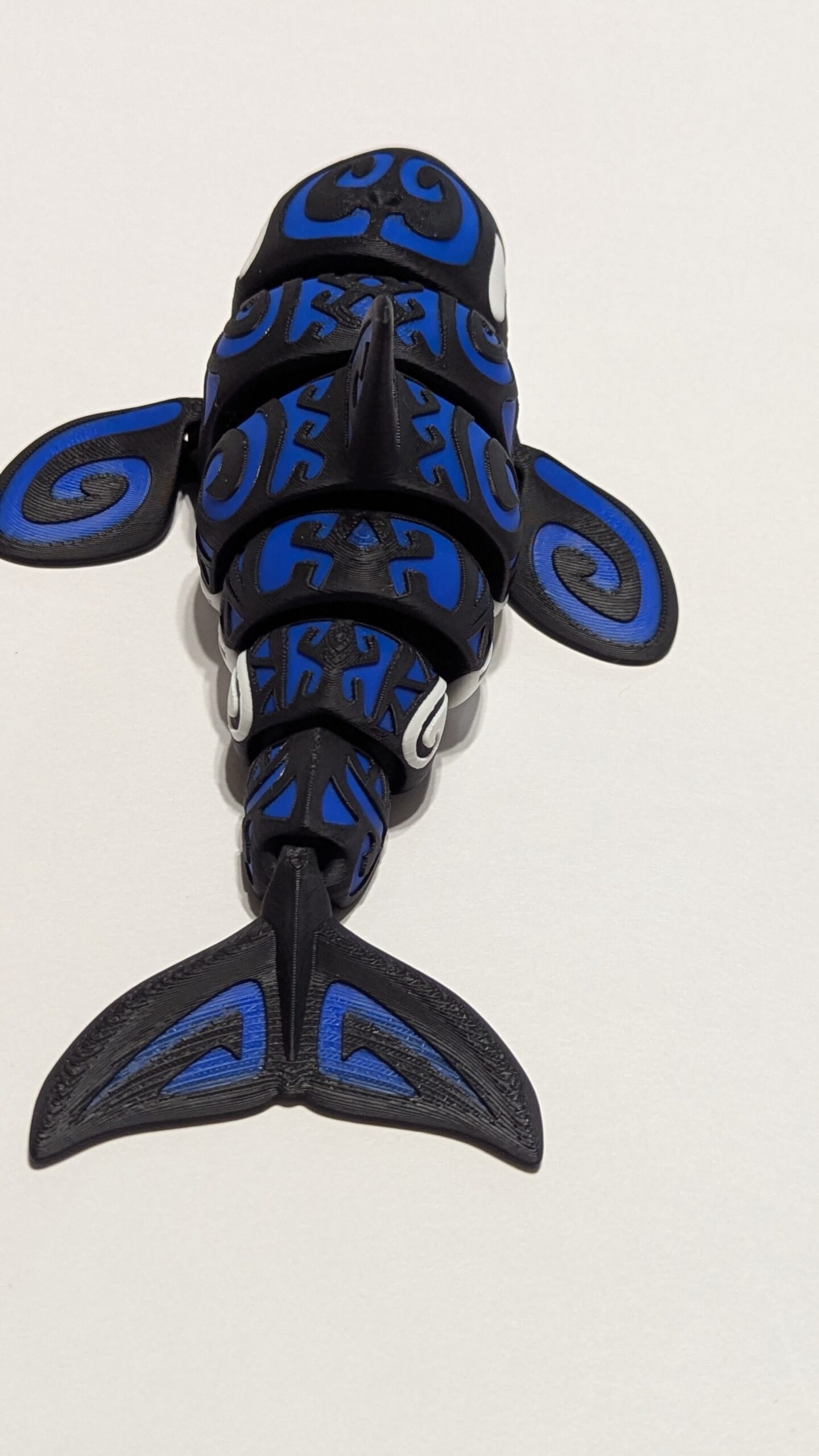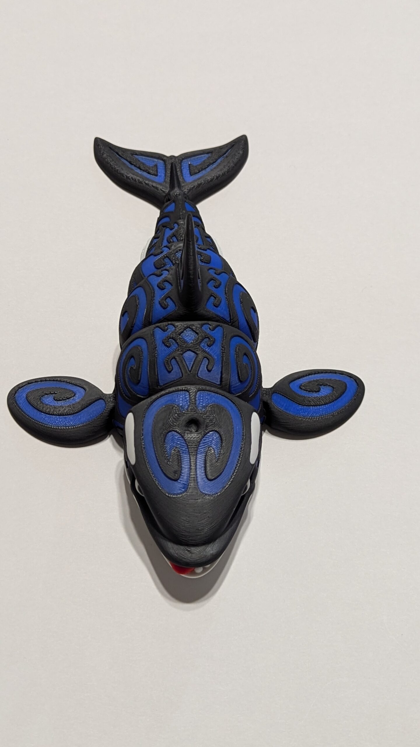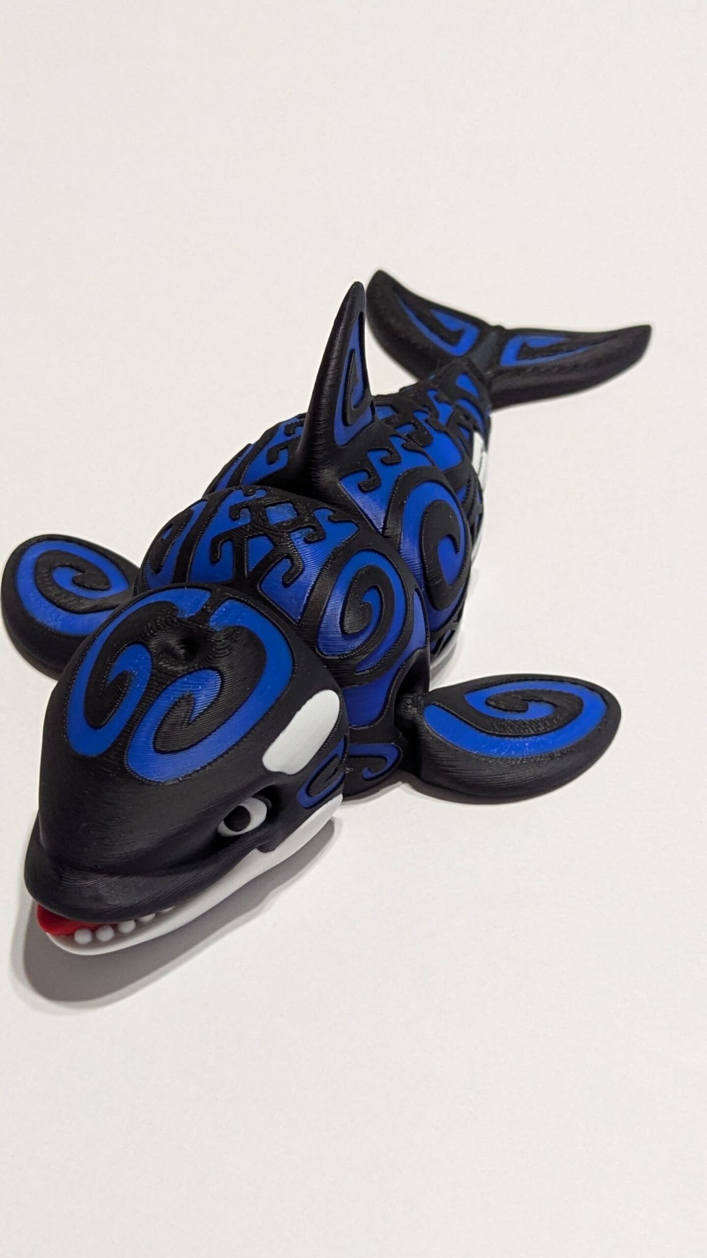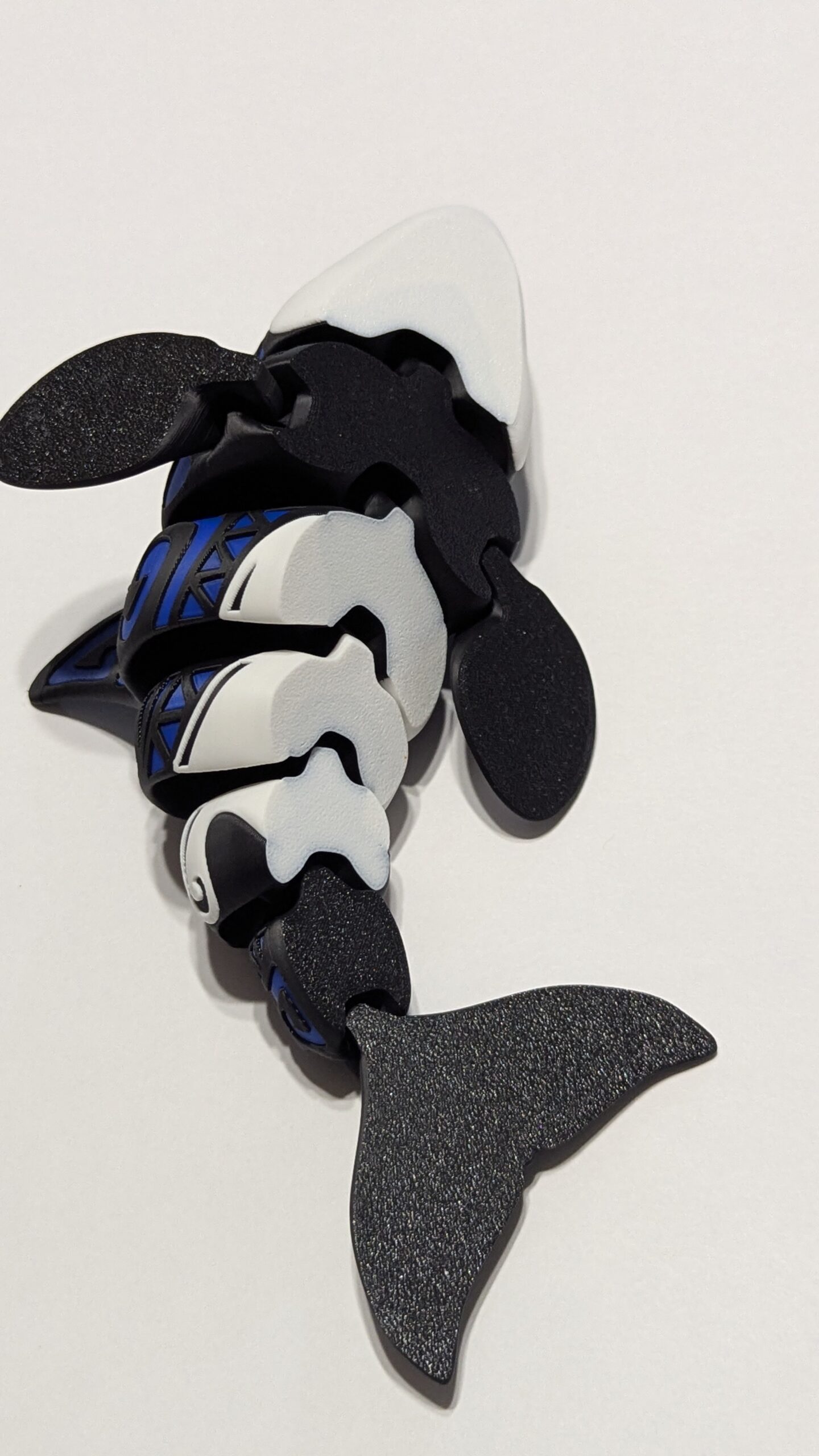Tattooed Orca by Flexi Factory. Accent color is Bambu Labs Blue PLA.