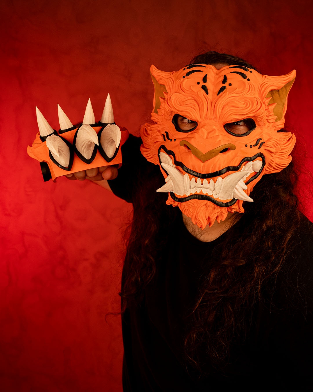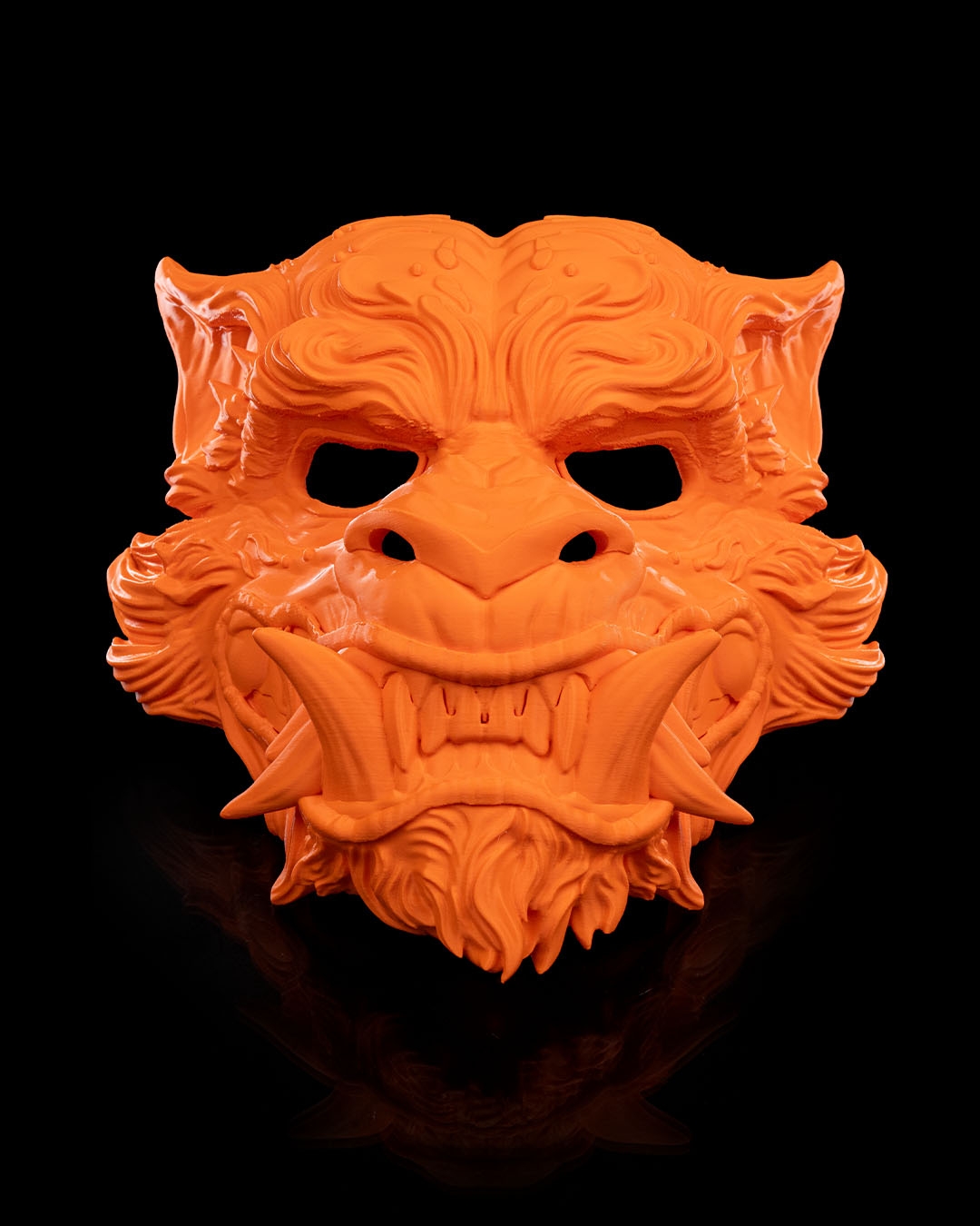 In Japanese culture, the Tora (tiger) mask embodies the powerful and fierce spirit of the tiger and symbolizes strength, courage, and protection. It is also great as a Halloween mask. It comes in three different sizes Small, Medium and Large.