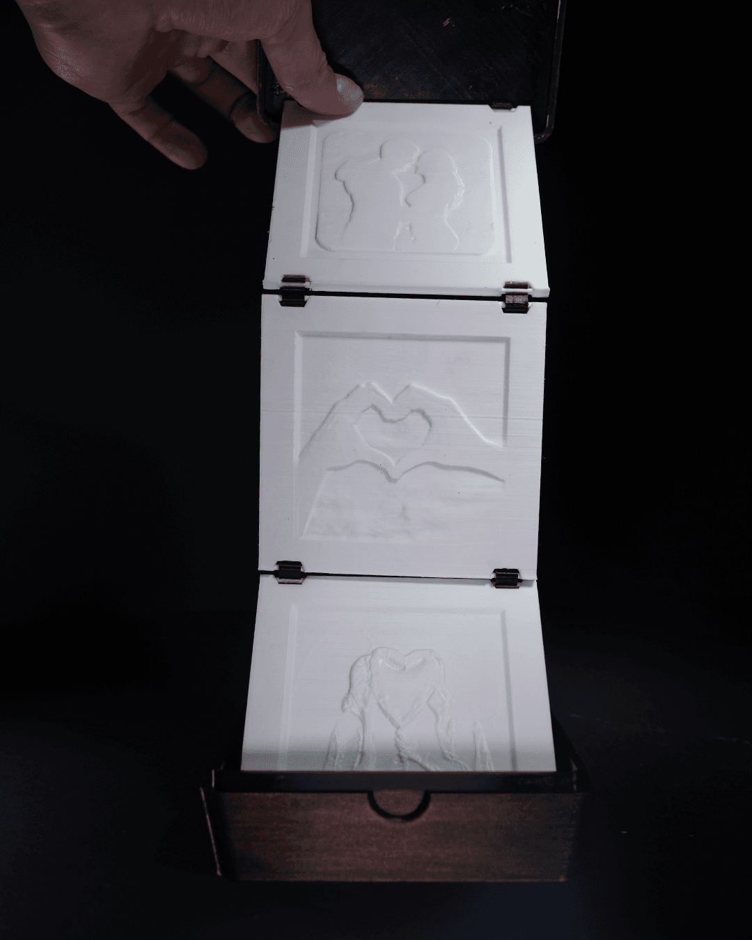 A Caixa de Memórias Valentine’s Lithophane é um presente único e personalizado que transforma suas fotos mais queridas em uma obra de arte iluminada. Esta caixa elegante é feita à mão com materiais de alta qualidade e possui uma tampa que exibe uma litofania detalhada, revelando suas imagens favoritas quando iluminada por uma luz suave. Ideal para ocasiões especiais como Dia dos Namorados, aniversários ou simplesmente para eternizar momentos inesquecíveis, esta caixa é perfeita para guardar lembranças preciosas e emocionar quem você ama. Dê um toque de magia às suas memórias com a Caixa de Memórias Valentine’s Lithophane.