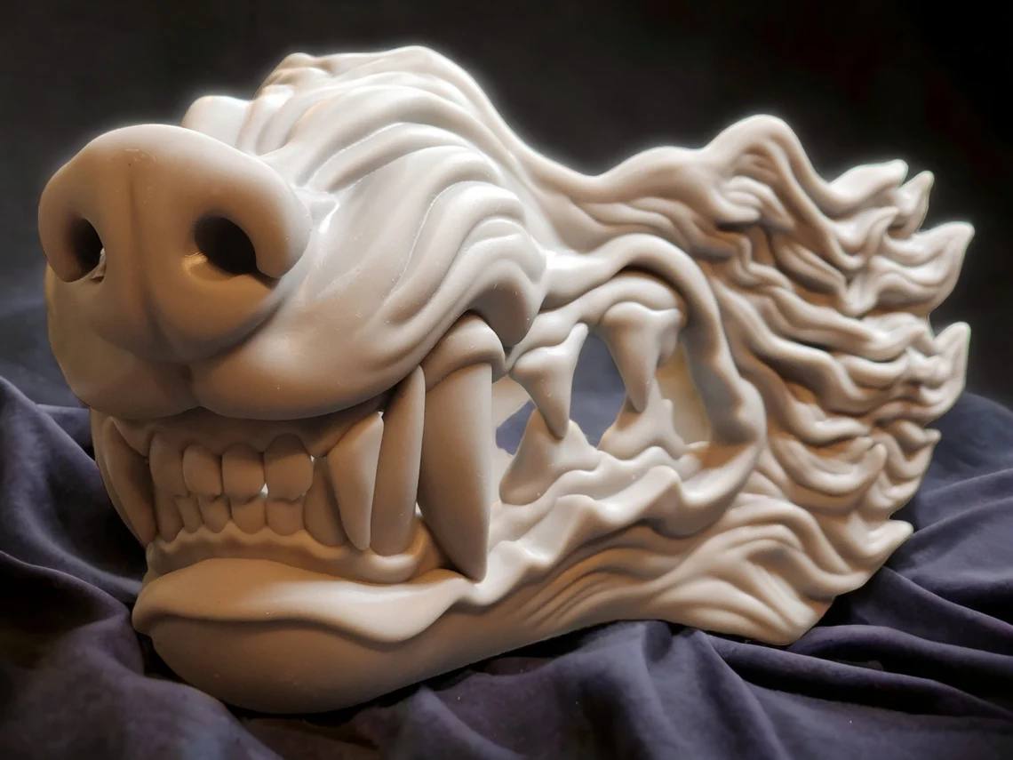 Wolf Animal Face Mask (Unpainted) – 3D Printed Decor, Costume & Cosplay