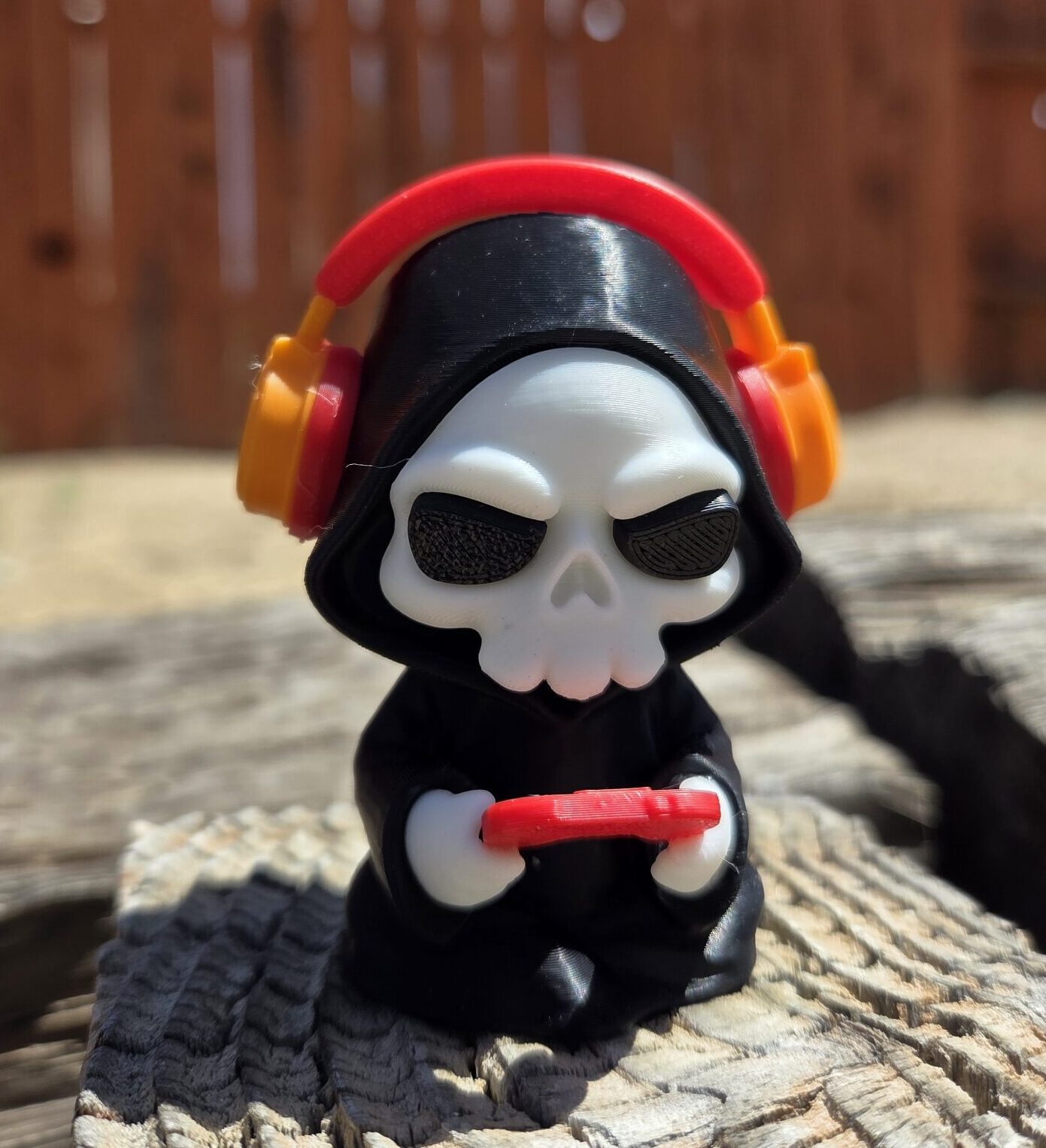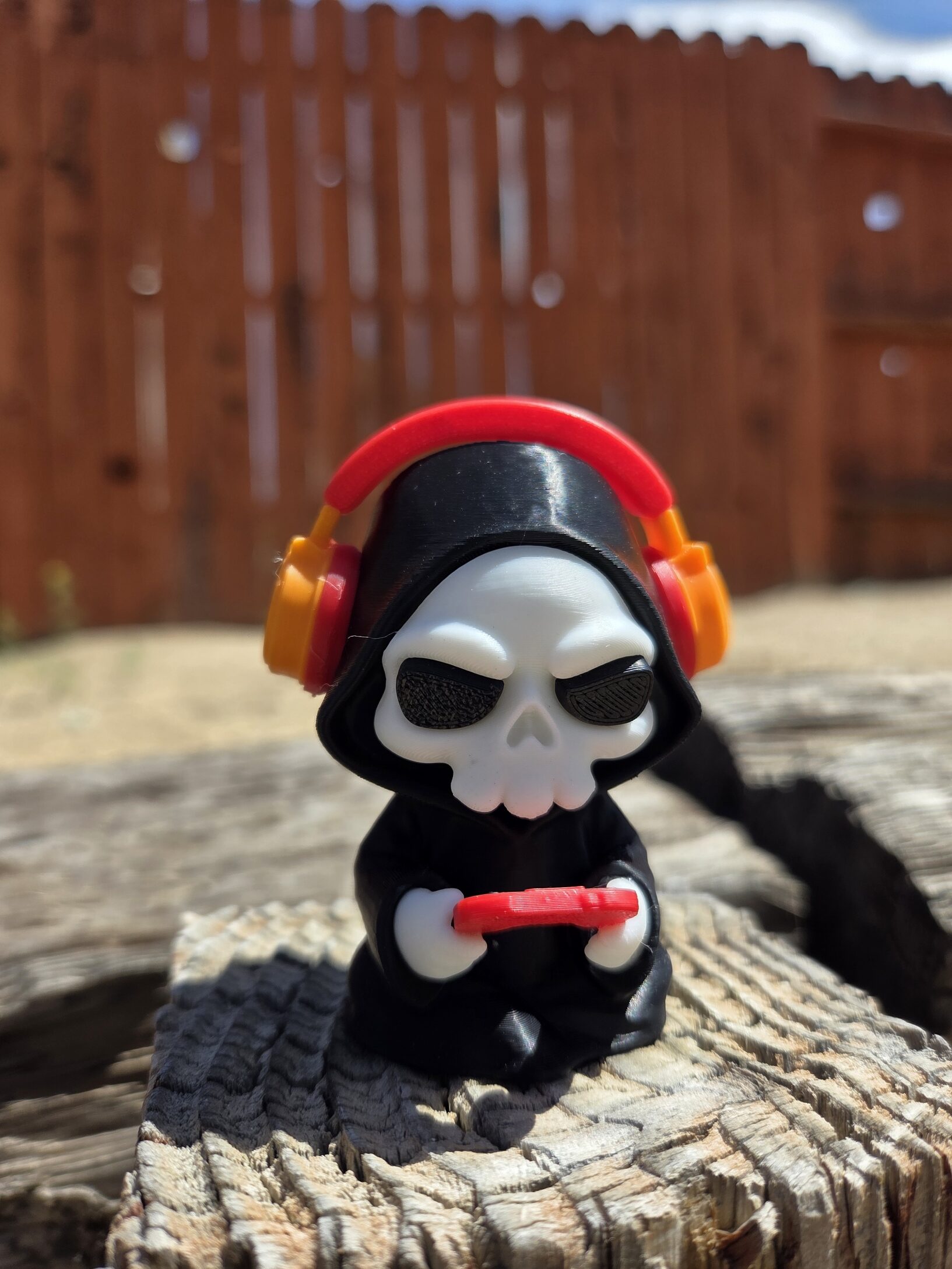 Press F Death Gamer mini figurine. You can color customize the head phone ear muffs and game pad. Also offered in a keychain and non-keychain versions. Non-keychain color have the number 1 after them.